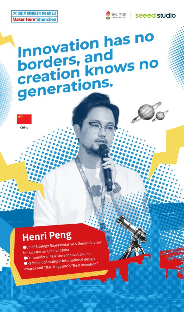Peng Yiheng is the Chief Strategy Representative and Senior Advisor of Kickstarter, the world’s largest crowdfunding platform, in the Greater China region. He is also the co-founder of H3Future Heart Cube Innovation Lab and has won numerous international design awards as well as the TIME Magazine’s Best Invention of the Year.