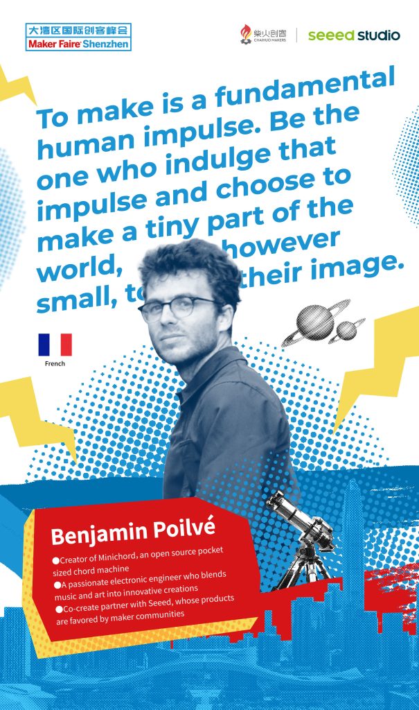 Benjamin Poilve is an electronic engineer from France who loves music and art. The open-source music synthesizer Minichord he developed creatively integrates open-source technology with music production and has been widely loved and highly praised by both the technical community and music producers.