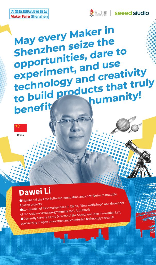 He co-founded China’s first maker space, “New Workshop,” and developed Ardublock, a visual programming tool for Arduino. As a key pioneer of China’s maker movement and an active builder of the open innovation ecosystem, he has made significant contributions to these fields.