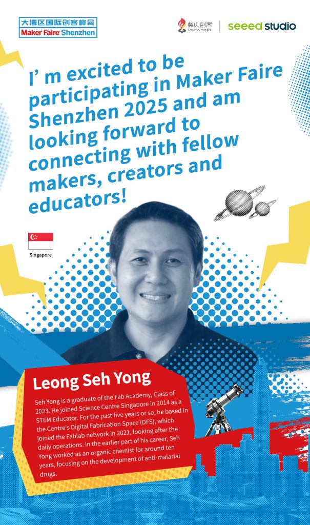 Seh Yong is a STEM educator from the Singapore Science Centre. He was formerly an organic chemist specializing in antimalarial drug development. Currently based in the Centre’s digital fabrication space, he supports makers and is dedicated to helping secondary schools establish STEM programs.