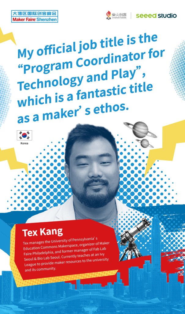 Tex manages the University of Pennsylvania’s Education Shared Makerspace and serves as an organizer for Philadelphia Maker Faire. He is currently focused on providing rich maker resources for the university and its community, offering diverse digital fabrication courses that integrate design, engineering, and art into educational practice for students.