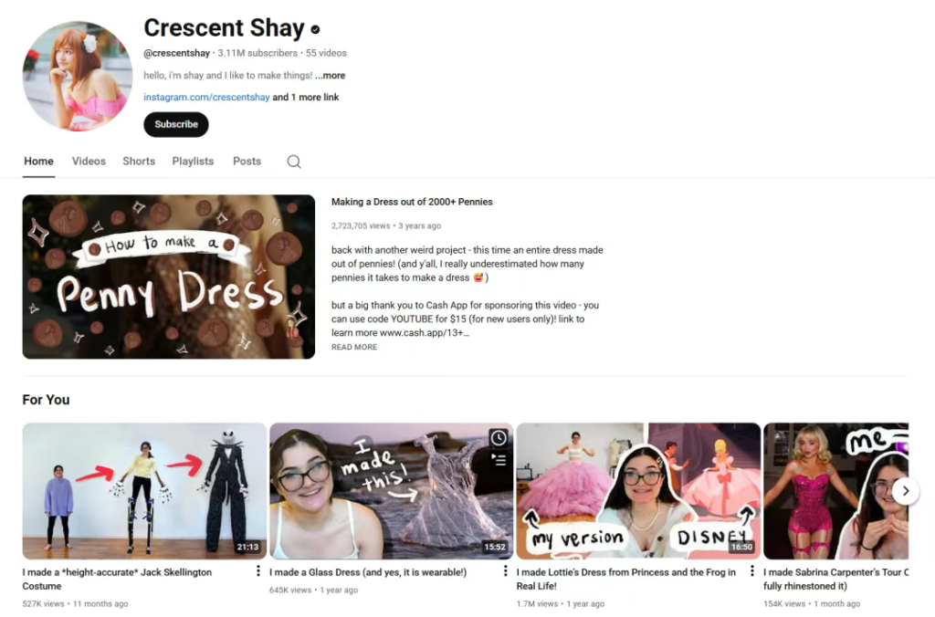 Shay isn’t just any maker—she’s the fashion queen of the maker community. With over 3 million subscribers on YouTube, she loves crafting diverse clothing designs using unconventional materials. Creative and skilled are words that define her.