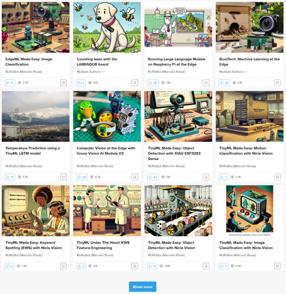 Marcelo realized that TinyML technology and devices have tremendous potential to be tapped: compact and flexible, affordable, easy to maintain and use, while allowing users to develop various functions with nearly unlimited development space. He began publishing projects and tutorials on open-source communities like GitHub and Hackster, helping more people understand, learn, and utilize TinyML technology through the internet.